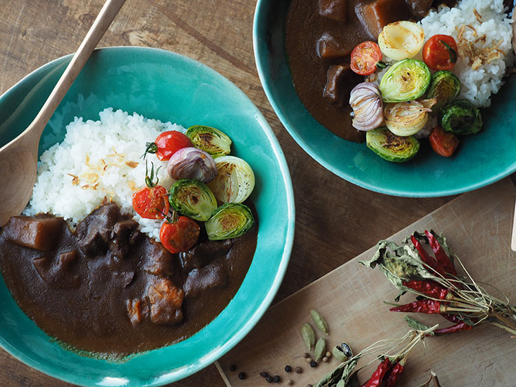 焼き野菜を加える一手間で、あっという間にカフェ風のおしゃれなカレーに早変わり。